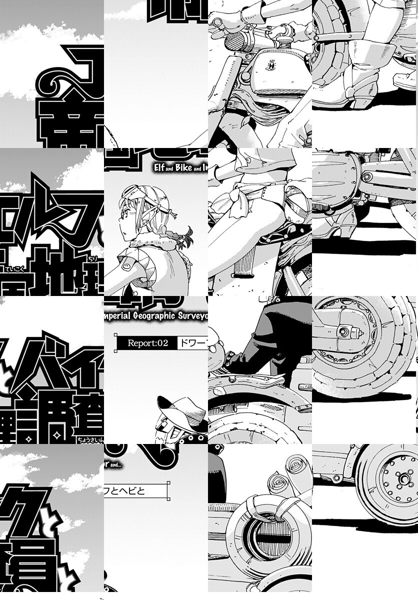 剣と魔法から銃と科学の時代に移り変わりつつある世界…。帝国地理院で調査員をしているエルフのノノアはバイクを駆り、魔族との大戦で大きく変わってしまった魑魅魍魎が跋扈する地方の街道沿いを、相棒のカゴーと2人で調査して地図を更新する仕事をしていた。異世界エルフのバイクアクション!