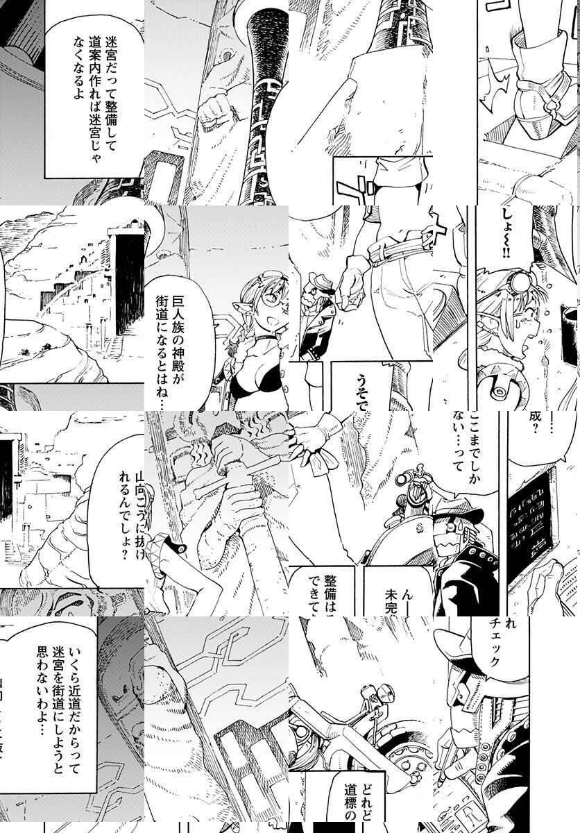 剣と魔法から銃と科学の時代に移り変わりつつある世界…。帝国地理院で調査員をしているエルフのノノアはバイクを駆り、魔族との大戦で大きく変わってしまった魑魅魍魎が跋扈する地方の街道沿いを、相棒のカゴーと2人で調査して地図を更新する仕事をしていた。異世界エルフのバイクアクション!