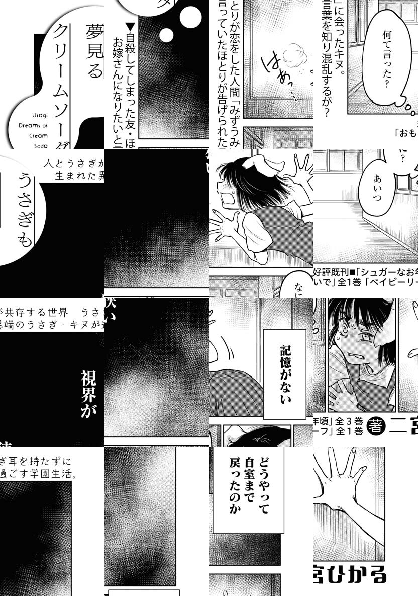 ミミのないうさぎとして生まれた少女・キヌは、ある出来事を境にニンゲンとうさぎとの差に悩み始める…。二宮ひかるが描く甘くて苦い思春期ドラマ。