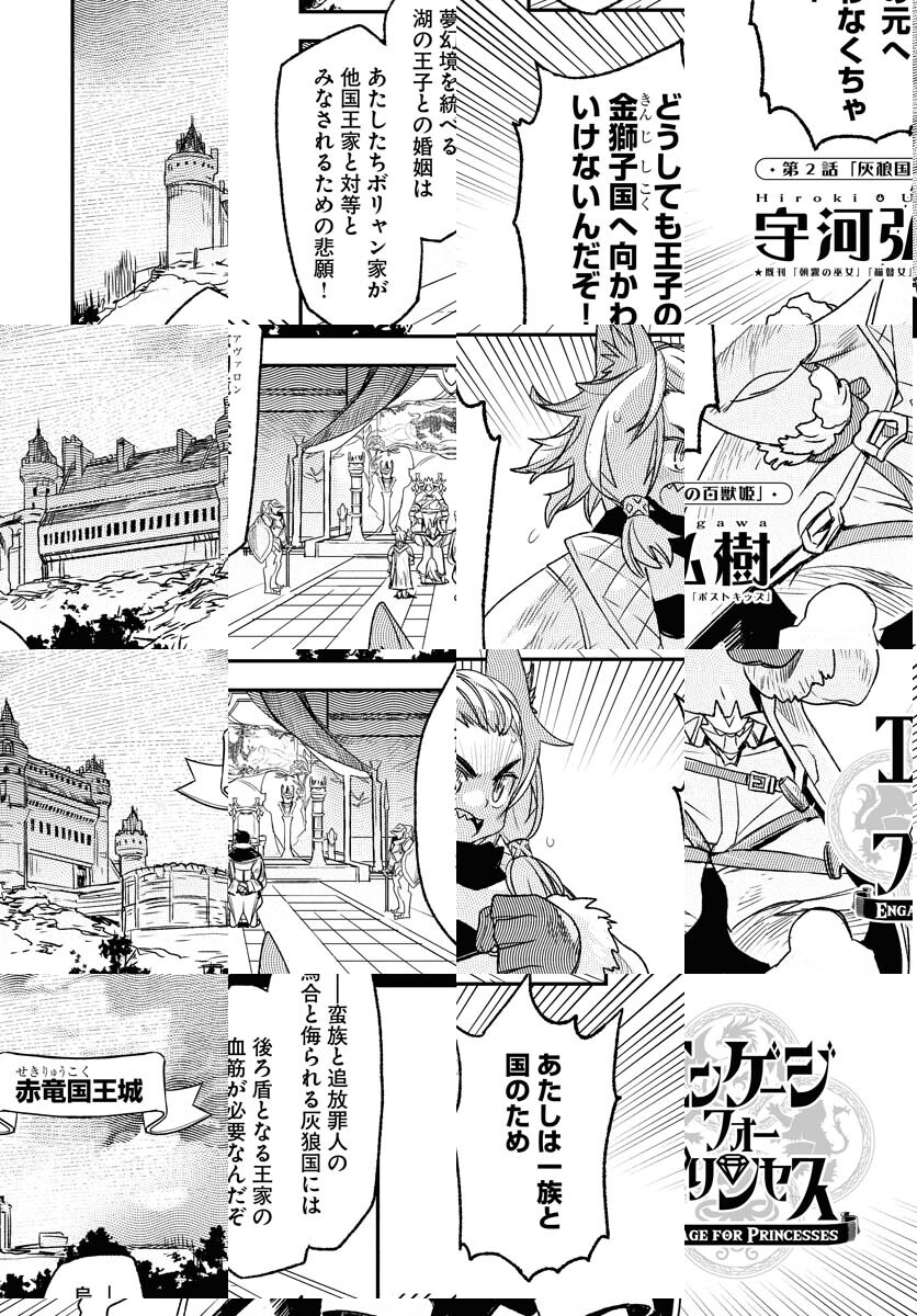 赤竜国の姫君ケリンは侍従の隻眼ダークエルフ・レイラに剣の手ほどきを受け、通称騎士姫と呼ばれていた。以前、救われた際に指輪を貰った「湖の王子」との再会を夢見ていたが…!?四王家のプリンセスが、一人の王子との婚姻をかけて競い合う王道ファンタジーバトル!