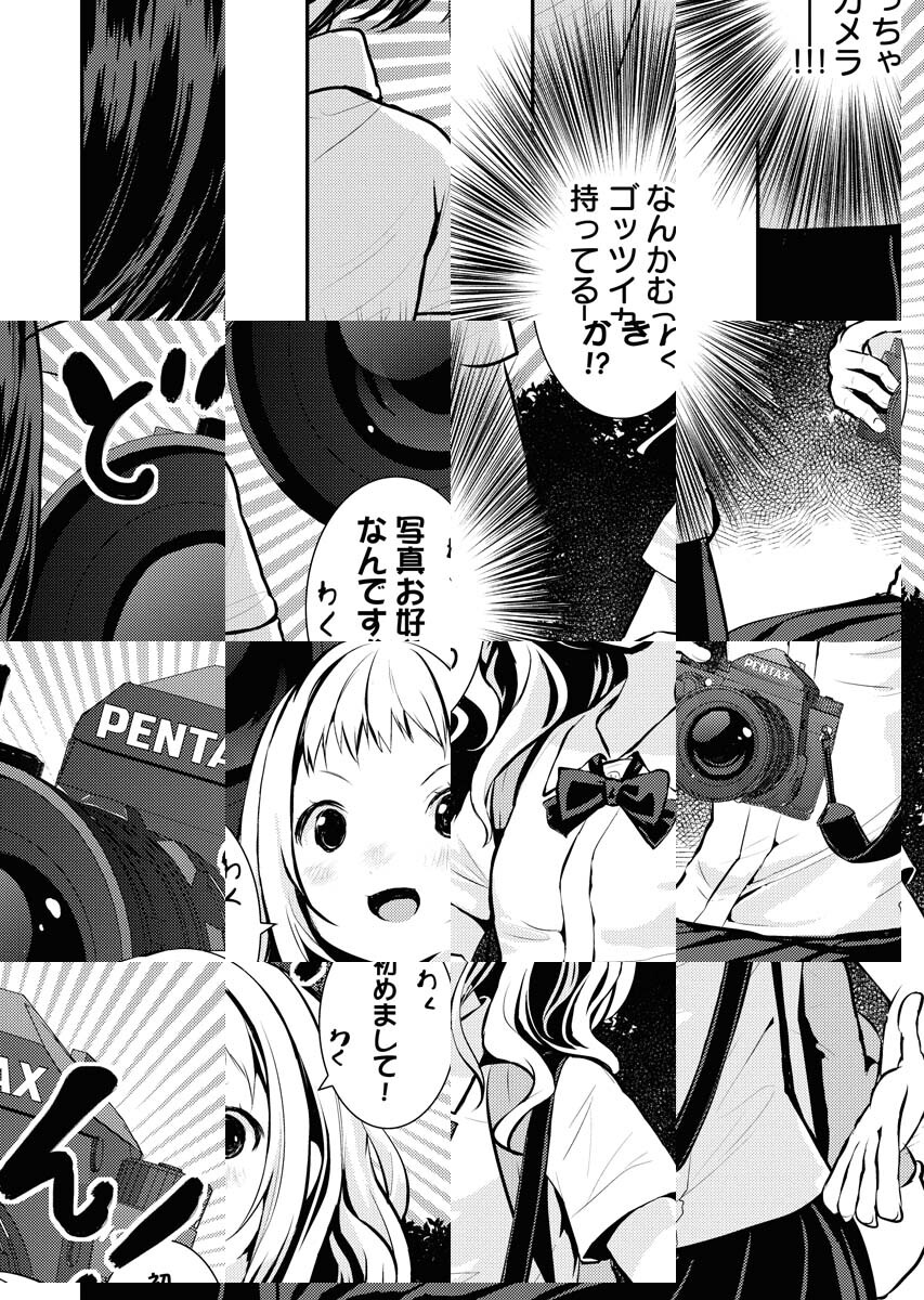 根暗で猫背(そして巨乳な)自分が好きじゃない女子高生のミトがお隣のお姉さんに誘われたのはファインダー越しの世界!?一眼カメラから新しい世界を見て一歩踏み出そう!ヤマノススメのしろが描くガールズホビーコミック!