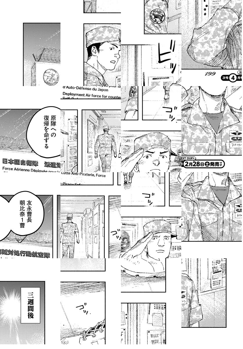 ソマリアの国境付近で、墜落ヘリの捜索救助にあたっていた陸上自衛隊第一空挺団の精鋭たち。その野営地に氏族間抗争で命を狙われる女性が駆け込んだ時、壮絶な撤退戦の幕が上がった。自衛官の男たちの絆と献身が描かれた日本推理作家賞受賞作のコミカライズ!