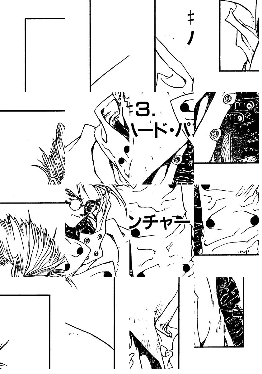 600億$$(ダブドル)の賞金首として指名手配中の伝説のガンマン、ヴァッシュ・ザ・スタンピード。今ではロスト・ジュライと呼ばれる、かつて7都市のひとつ第3都市ジュライを灰に変えた彼の正体は…平和主義者!?ハートフルガンアクション!!